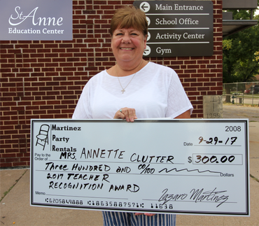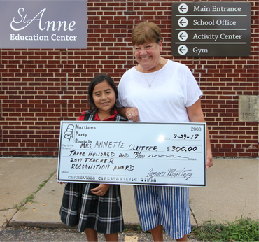 In 2017, we decided to recognize a local teacher who has made a positive impact in a student’s life. We used our Facebook page (Facebook.com/MtzPartyRentals) to place the call for teacher nominations. As a result, we received many letters from students and parents on behalf of their young children nominating teachers who had made a difference in their life. It was not easy to decide on a winner since many great teachers go beyond their regular duties to help a student. The winner of this year’s teacher recognition award was Mrs. Annette Clutter of St. Anne’s Education Center. She has made an impact in her young student Arely and her family. Mrs. Ontiveros is so grateful that when she saw our Facebook post asking for nominations there was no doubt she had Mrs. Clutter in mind. Mrs. Clutter received a copy of the letter submitted and said she would read it at home.